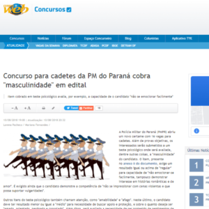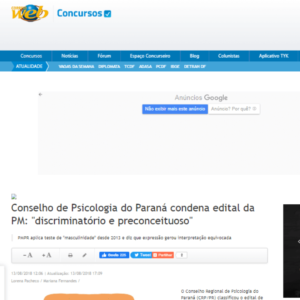 O Conselho Regional de Psicologia do Paraná (CRP/PR) classificou o edital de concurso da Polícia Militar do estado (PMPR) como discriminatório e preconceituoso. O regulamento